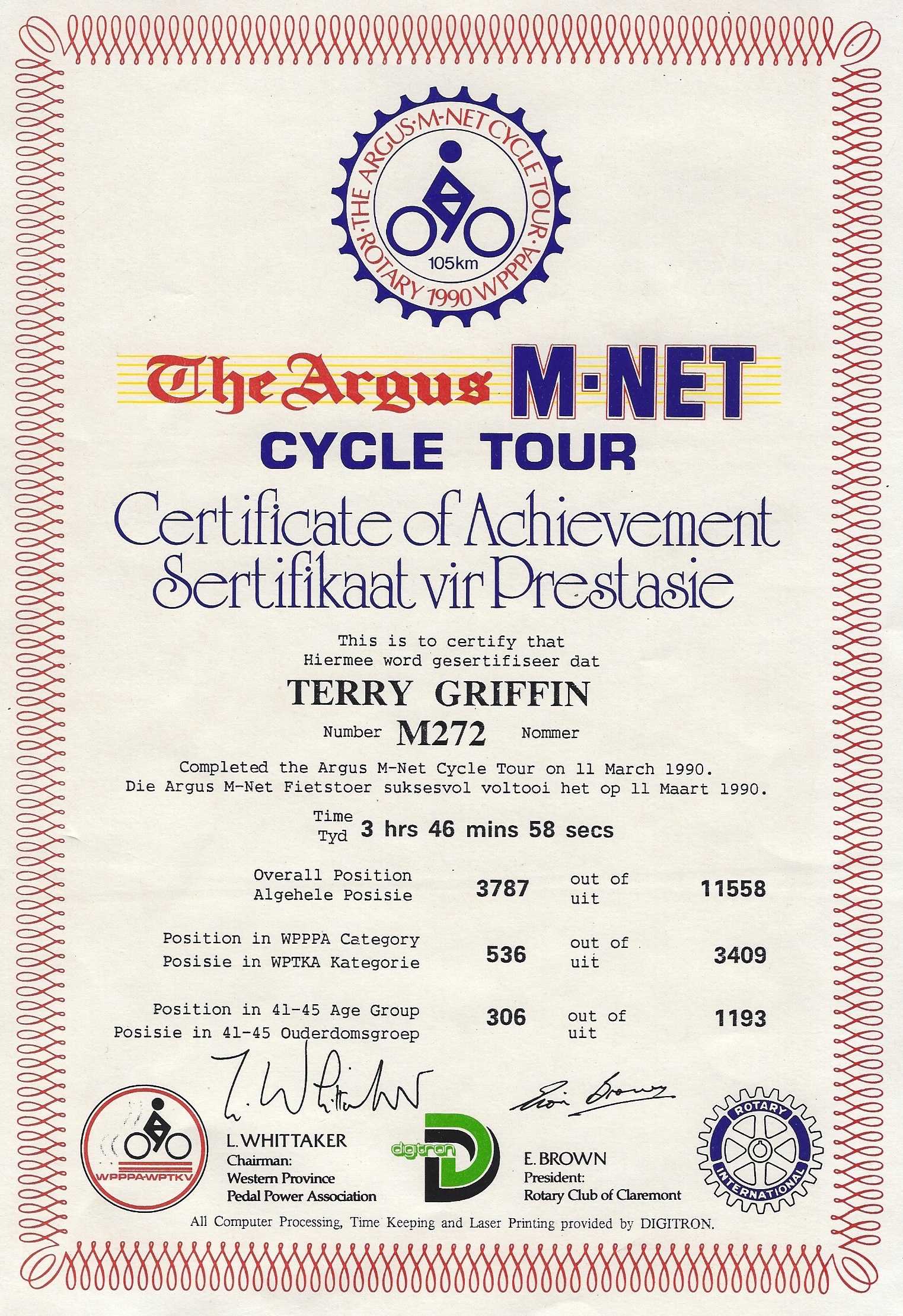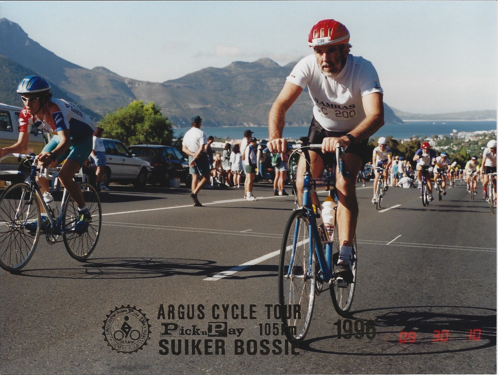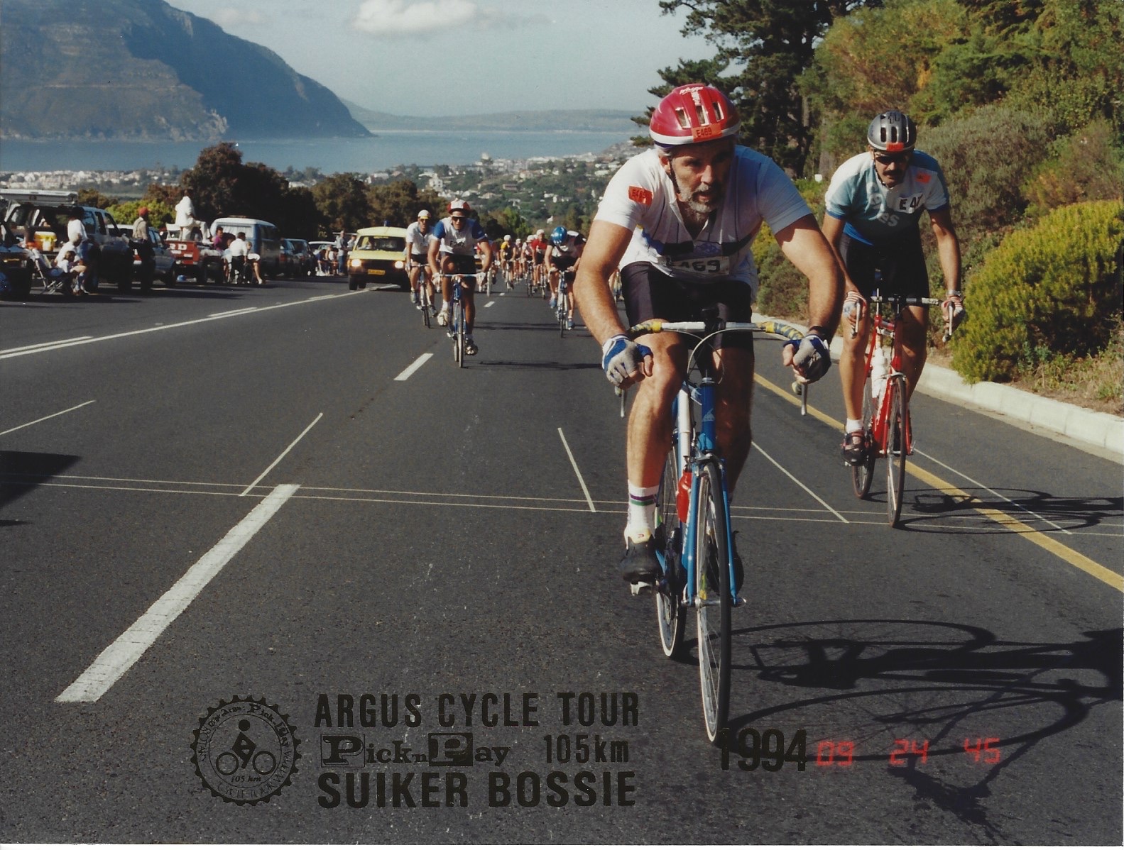 Towards the end of 1989 my friend Eric Newton sold me his elderly Raleigh bike and persuaded me to enter the Argus. He and a number of other friends had already been doing the Argus for a few years: Pete de Jager, Sean Pope, Steven Bertie-Roberts, and others. Since I was living in Hout Bay at the time, my first training ride was half way up Chappies!