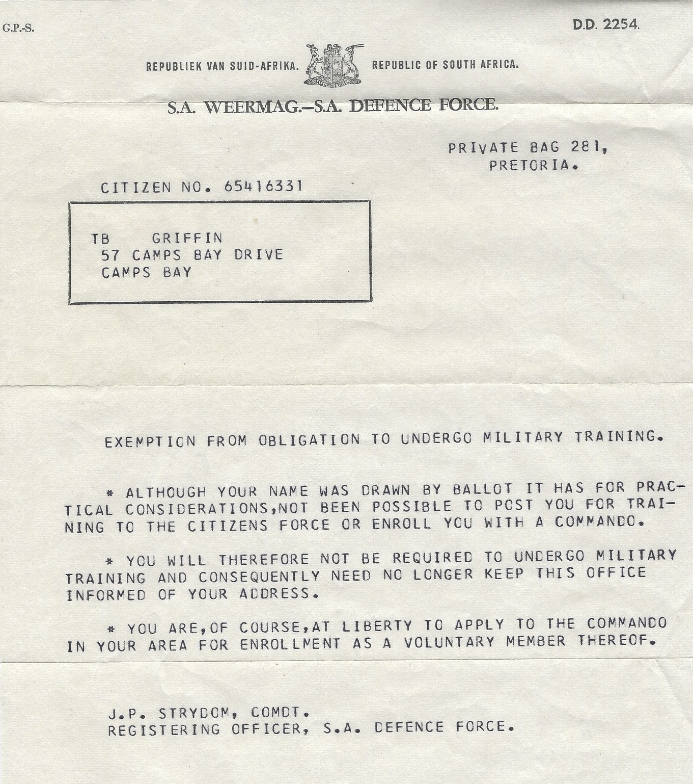 In the matric photo below the guy in the top row, third from left, Brendan Dalton, was my best friend. He lived just up the road from me in Camps Bay.
