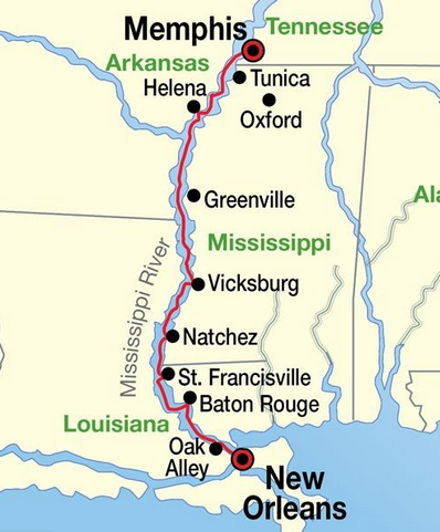 I left New Orleans on Monday morning and headed up the Mississippi River on Route 61 aiming for Memphis. Passing Vicksburg you enter the Mississippi Delta which is as flat as a pancake and cotton from one horizon to the next. And this is where the real blues territory lies. Cleveland and Clarksdale (remember the Monkees?) both have blues museums and are relatively modern. But the towns in between, like Rolling Fork and Yazoo City are not so great.