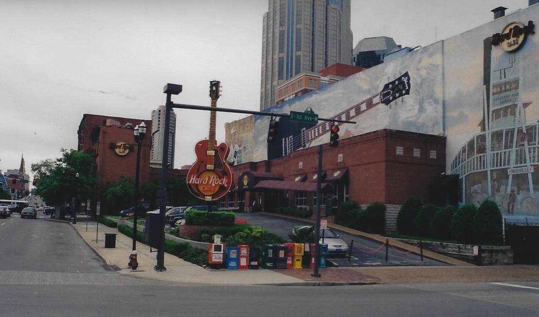 Monday morning I left Memphis heading for Nashville. The weather was grim and the radio was broadcasting tornado warnings. Driving past Jackson I saw a lot of damage; trees down, billboards destoyed. Eventually it became so dark and stormy that I pulled into a truck stop to wait it out. There were a number of other people waiting it out in the restaurant and the TV showed the tornado going past about 10km away. Eventually we decided it was safe to leave and an hour later I was in Nashville.